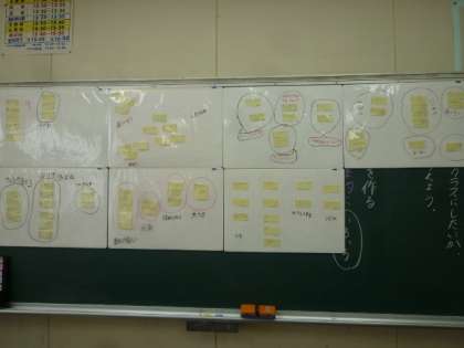今年1年の学級目標をクラスで考えています。一人一人の意見が反映されるように、個々に付箋に意見を書いて「まなボード」にまとめました。