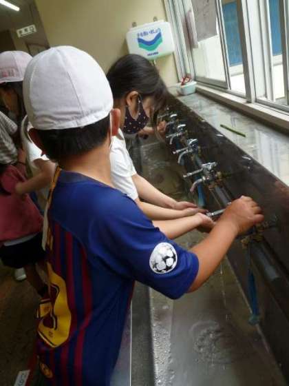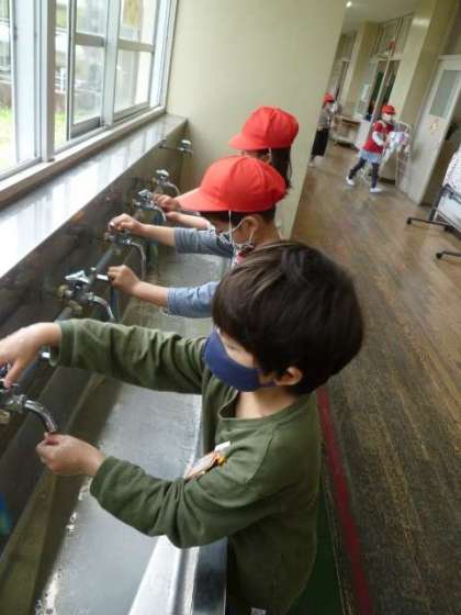 4月15日 放課に遊んだときや、共有のものを使った後は、しっかりと手を洗います。