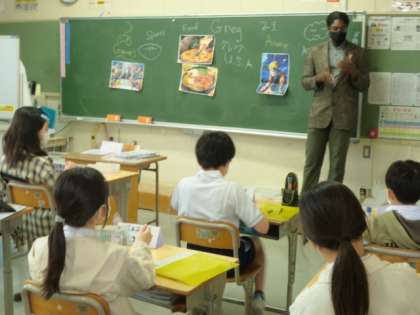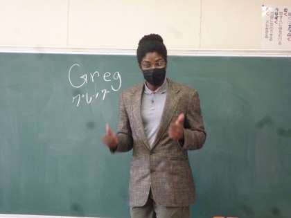 今年度は、ALTのグレッグ先生が外国語を教えてくださいます。