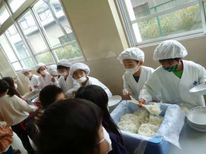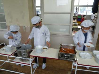 1週間ごとに給食当番が交代します。