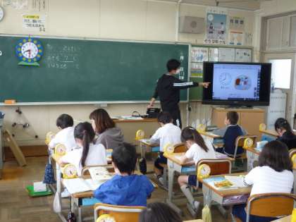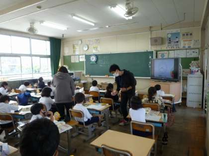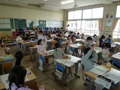 2年生が算数の時間に、時計の勉強をしています。