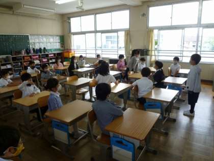 2年生が、朝の活動の中でスピーチを行っています。