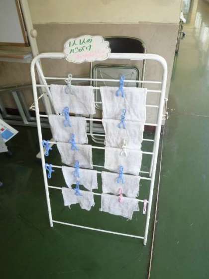 廊下を見ると、雑巾がきちんと整頓してかけてありました。