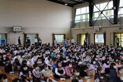 今年度初めての全校集会でしたが、スムーズに入場し、お話を聞いている様子は、どの子も真剣でした。