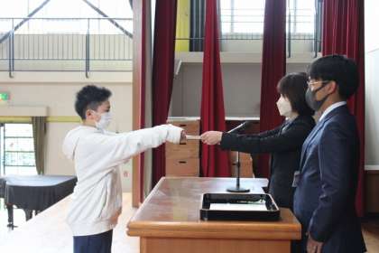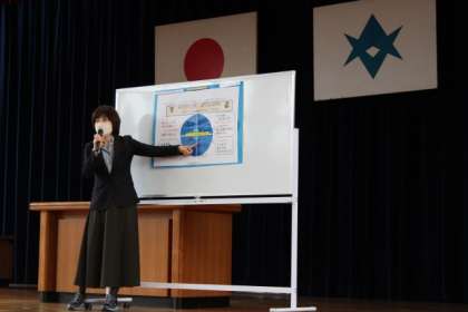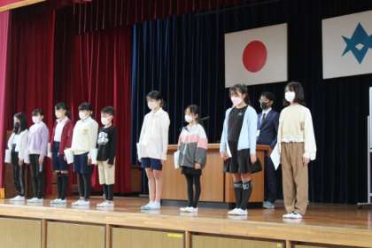 校長からは、「チャレンジする」「命を大切にする」「協力する」「感謝する」の4つのことを守り、みんなで笑顔あふれる学校にしていこうと話しました。