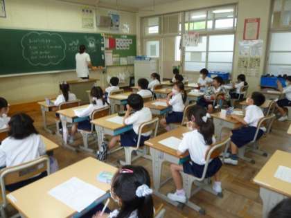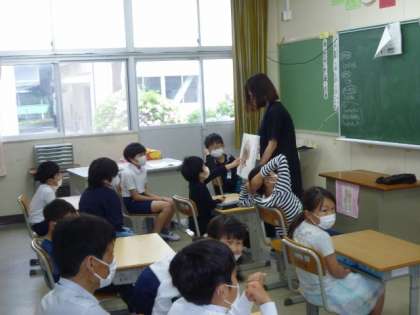 先生が本を読み聞かせたり、対話的な授業をするための「つなげる言葉」を教えてもらったり、昨日習った「ひらがな」を復習するなど、各クラスで工夫して活動していました。