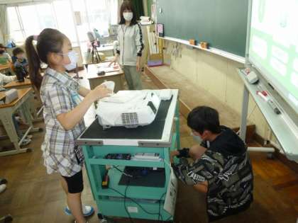 授業が始まる前に、係の人がパソコンやプロジェクターを準備をしていました。