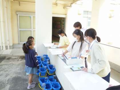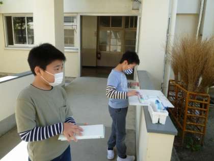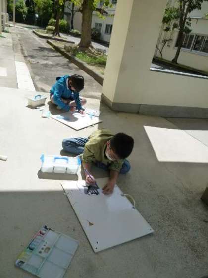 思い思いの場所を描いています。放課には、1年生ものぞきに来ました。