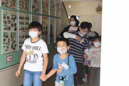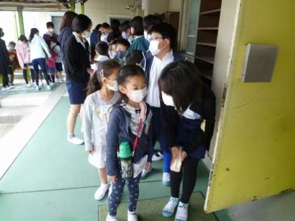 付き添いの6年生が、緊張をほぐしてあげています。