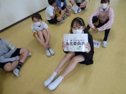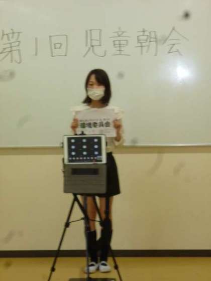 今朝は、企画委員会による児童朝会を行いました。
