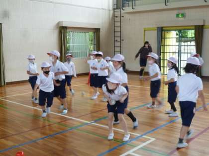 2年生は、新聞紙でつくった玉をボールにしてドッチボールをしました。