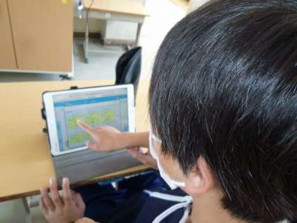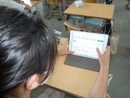 6年生が、学習用タブレットを持ち帰った際に、家でタブレットを使って宿題をしました。