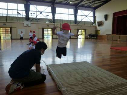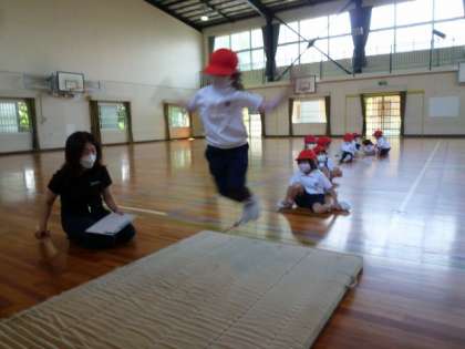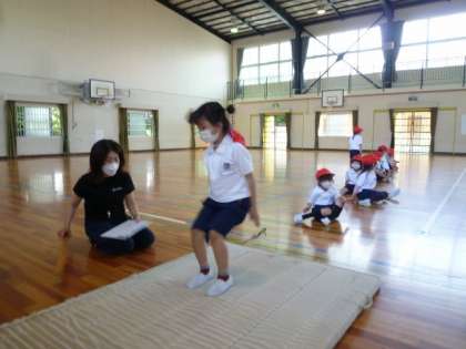 体育館の中では、立ち幅跳びをしました。