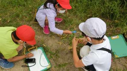 3年生が、自然観察の森のレンジャーさんと、校内の自然の学習をしました。桜の葉っぱや木はどうなっているかな?バッタはいるかな?一生懸命に観察しました。