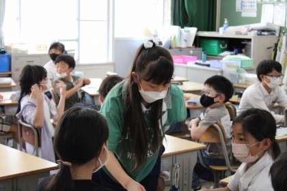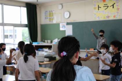 6年生が考えてくれたゲームで楽しみました。5年生も、下級生のお世話が上手になってきました。