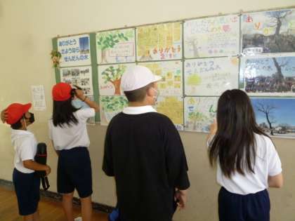 学校のお誕生日会に合わせて、3月に行った「せんだんの木とのお別れ会」の時に作った「ありがとうメッセージ」が掲示されました。