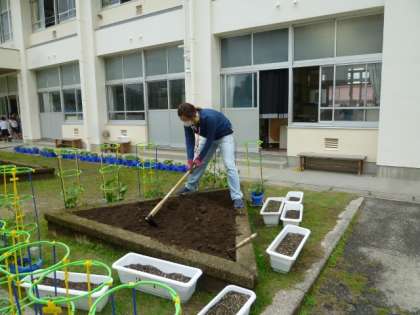 学校サポーターの環境ボランティアさんが、花壇のお世話に来てくれました。玄関前、四季の小径は、いつもきれいなお花がいっぱい咲いていて、癒されます。