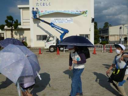 昨日設置の様子を見ていた児童から、「かっこいい」「すごい」と声が上がりました。