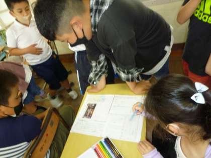 「写真を貼るとわかりやすい」「丁寧に貼ってね」と、協力して仕上げました。