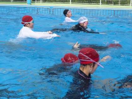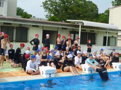 6月20日 金曜日に、6年生もプール開きを行いました。 蹴伸びやバタ足の練習をしました。