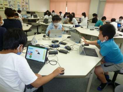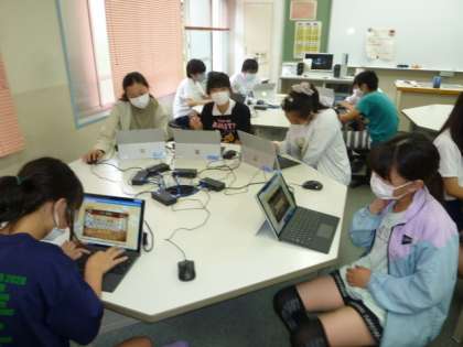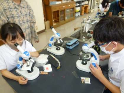 科学研究クラブは、顕微鏡で家から持ってきた自分の見たい物を見ています。玉ねぎがきれいに見えました。パソコンクラブは、タイピングやカレンダー作りをしています。