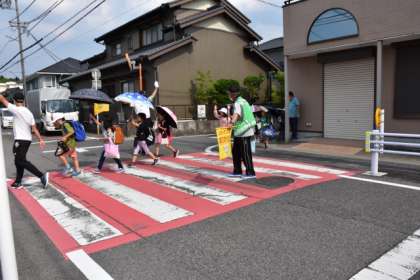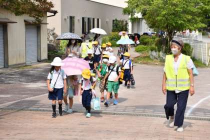 先日、いつも登下校を見守ってくださる見守り隊の方に加え、PTA役員と民生児童委員のみなさんと教員とで、児童の下校時に付き添って歩きました。