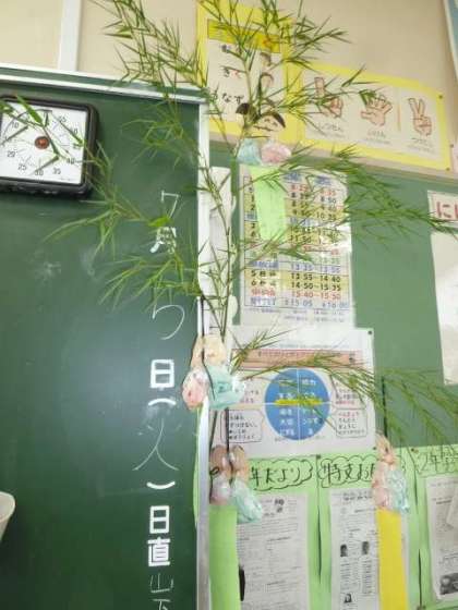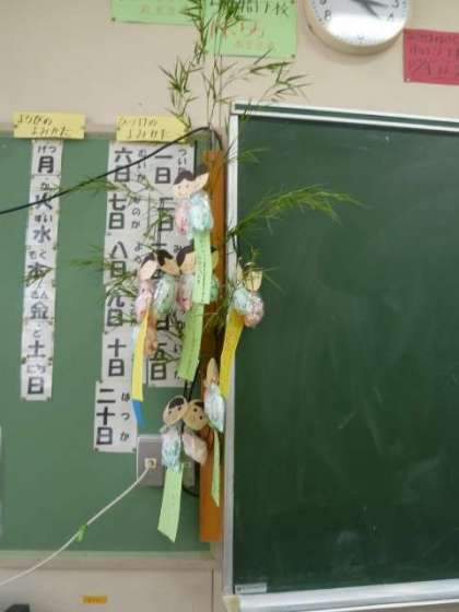 7月7日は七夕です。七夕飾りを作って、お願い事をしている学級もあります。7月7日は晴れて、織姫様と彦星様が会えるといいですね。