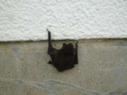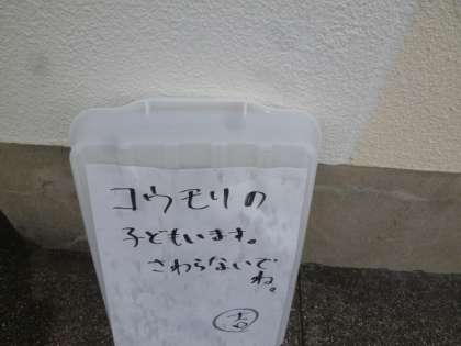 朝、学校に来るとコウモリの赤ちゃんが校舎の壁にくっついていました。見つけた子どもたちは興味津々です。でも、大騒ぎするとコウモリがびっくりするので、そっと寝かせてあげました。