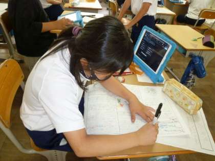 インタビューしたり、学習用タブレットで調べたり、表を書くなどして工夫して作成しました。
