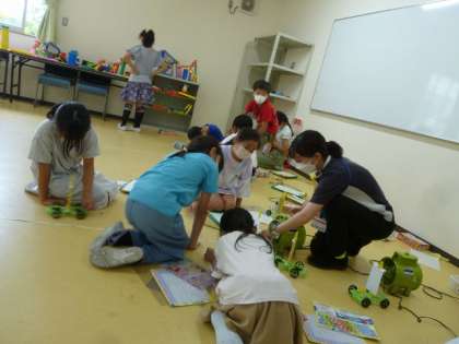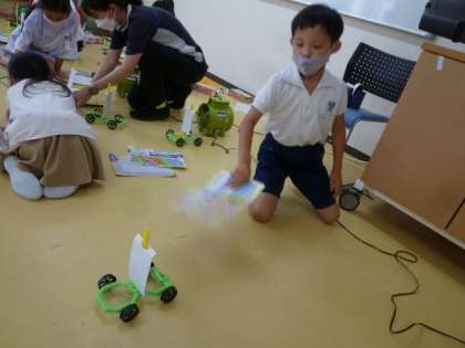 「すごーい!たくさん走ったよ」など、楽しんで実験をしていました。