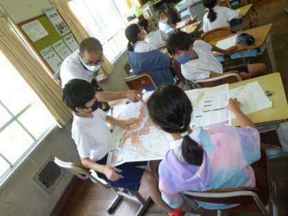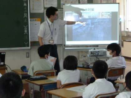 ハザードマップを使って、危険個所の確認や、どのように増水するのかを動画で見せてもらいました。