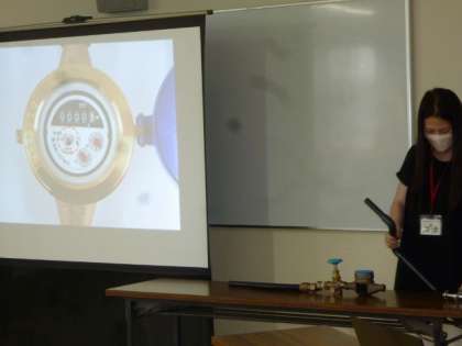 水道の検診メーターを見せてもらいました。節水についても学んでいました。