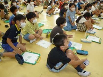 子どもたちは、一生懸命にお話を聞き、メモを取っていました。