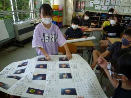 「10円玉をピカピカにする方法を研究したよ」「紙が月に届くかやってみた」など、報告し合っていました。