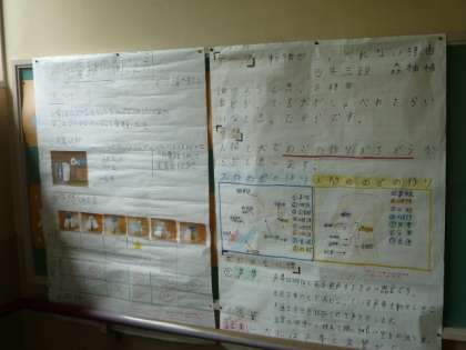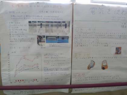 夏休みにがんばって取り組んだ自由研究が掲示されていました。