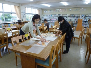 図書ボランティアの方々が、図書室の掲示物を作ってくれました。