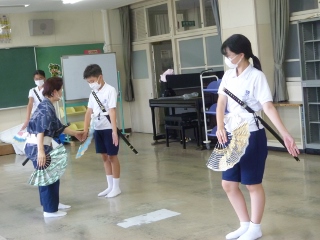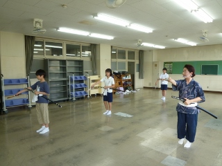 剣舞クラブの児童は、地域講師の木戸先生に教えてもらいながら練習していました。姿勢よく踊っていました。