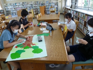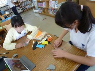 折り紙クラブの児童は、ハロウィンに向けて掲示物を作っていました。