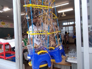 三連休の前に、台風被害を防ぐために1年生の育てている朝顔を校舎内にしまいました。