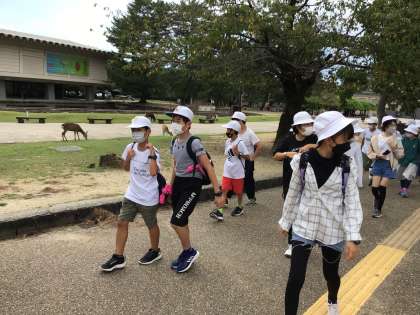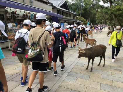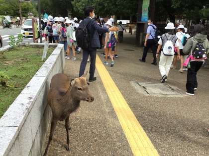 9月29日 奈良にきました。 歩道にも鹿がたくさんいます。