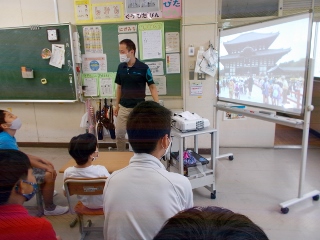 また、修学旅行の写真をプロジェクターで映し、修学旅行を振り返っているクラスもありました。