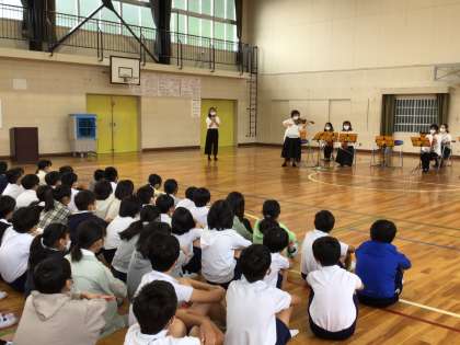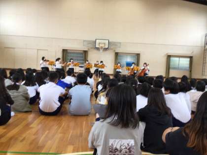 5,6年生が、弦楽合奏を行うアンサンブルひまわりを招いて、鑑賞会をおこないました。