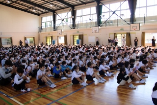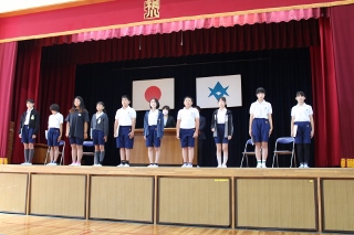 全校児童が見守るなか、真剣な表情で、任命状を受け取りました。