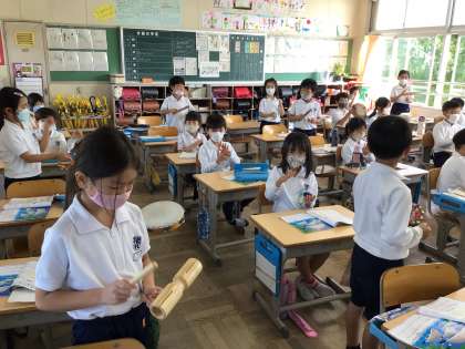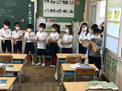 2年生が音楽の学習で、合奏をしました。