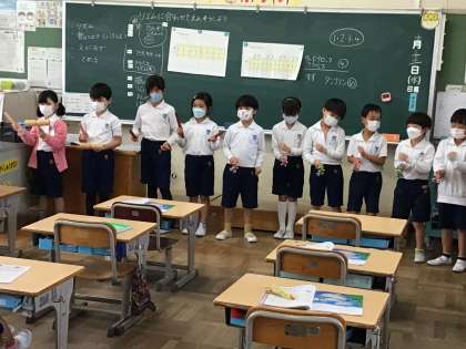 「イルカはざんぶらこ」の曲をリズムに乗って演奏しました。