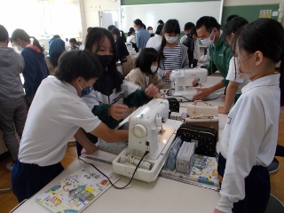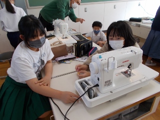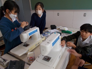 5年生が、家庭科の学習で初めてミシンを使いました。