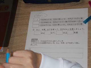「以上」「以下」を使って数の範囲を示す勉強をしました。