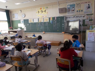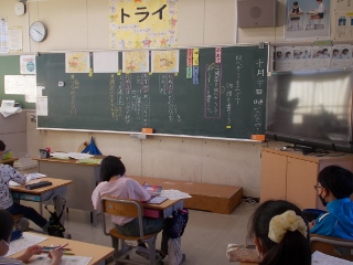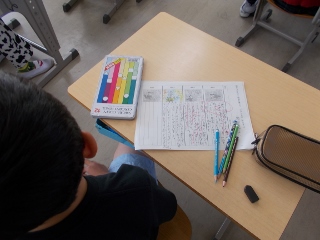 3年生が国語の学習で、自分で物語を考え、本を作ります。