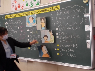 1年生が、学活の時間にインターネトの上手な使い方について学習しました。