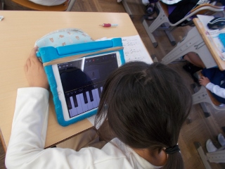 2年生が、音楽の授業でリズム打ちをしました。